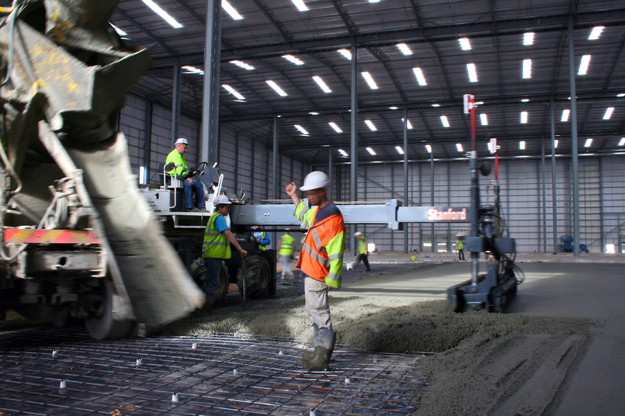 Döküm yerine ulaşan beton bekletilmeden yerleştirilmeli ve vibrasyon kısa sürede tamamlanmalıdır. Dökümün gecikmesi halinde priz geciktirici kimyasal katkılar kullanılmalı ve beton dökümü gece tercih edilmelidir. Döküm esnasında taban ve kalıplara su püskürtülmesi beton karışımındaki suyun emilmemesi açısından faydalıdır. Böylece betonla temas edecek yüzeylerin sıcaklığını düşürerek nem miktarını artırmak mümkündür. Beton yerleştirildikten hemen sonra ilk mastarlama yapılır; daha sonra bir insan betonun üzerine çıktığında 1-2 mm derinlikte iz kalınca, ikinci mastarlama işlemi yapılır.